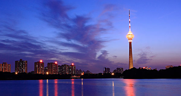 中央广播电视塔始建于1987年1月,1994年9月建成,10月1日正式开放。中央广播电视塔占地15.4 公顷,高386.5米,加避雷针总高405米,总重5万吨。这是一座多功能现代化的标志性建筑,可发射8套电视和10套广播,是中国第三高塔,世界第八高的高塔,世界高塔协会成员塔,中国广播电视协会高塔委员会成员塔。2011年8月9日晚,北京城区遭遇雷暴袭击,一道闪电击中中央电视塔。