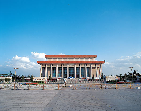 毛主席纪念堂(英文全称:Chairman Mao Zedong Memorial Hall)南北长260米,东西宽220米,占地面积为57200平方米左右,建筑面积33867平方米。纪念堂的主体建筑长宽各105.5米,高度为33.6米。这座方形建筑分为地下一层,地上一层,基座由枣红色花岗岩砌成,基座高4米,座上矗立着17.5米高的44根花岗岩廊柱,承托着熠熠生辉的金黄琉璃重檐屋顶。在这座举世瞩目的辉宏殿堂里,安放着中国共产党、中国人民解放军、中华人民共和国的缔造者毛泽东主席的遗体,每天前往瞻仰的中外宾客络绎不绝。