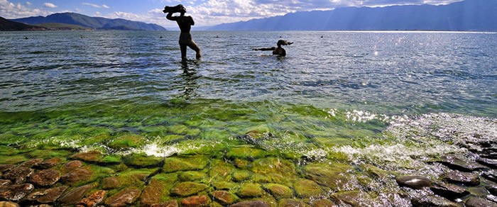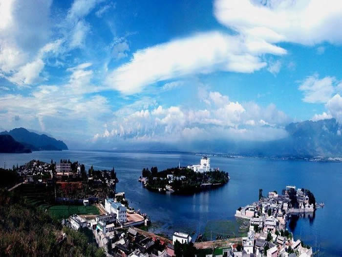若要夜宿海岛,则可在岛上的别墅小区来一番渔村感怀。 累了,看看民族歌舞表演,品品白族三道茶,尽情领略民俗风情。饿了,南北菜系任选,风味小吃自便,别忘了那道活水煮活物的双廊炖梅鱼,让你带回一串永久难忘的回味。 南诏风情岛的主要景点有沙壹母群雕像、云南福星广场阿嵯耶观音像、南诏行宫、本主文化广场、太湖石石群、 乐雪榭和大榕树等。