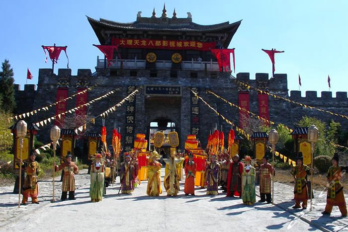 大理天龙八部影视城坐落于全国重点风景名胜区苍洱景区的中心和风光秀丽的大理省级旅游度假区山丽片区:背靠秀美的苍山,东临碧波万顷的洱海,东距大理古城1.5公里,北距大理三月街会场0.5公里,距崇圣寺三塔2公理,是大理省级旅游度假区为<天龙八部>影视剧拍摄投资兴建大理天龙八部影视城大理天龙八部影视城的一个大型影视拍摄基地。