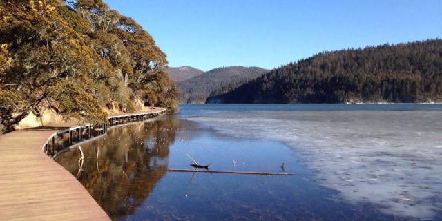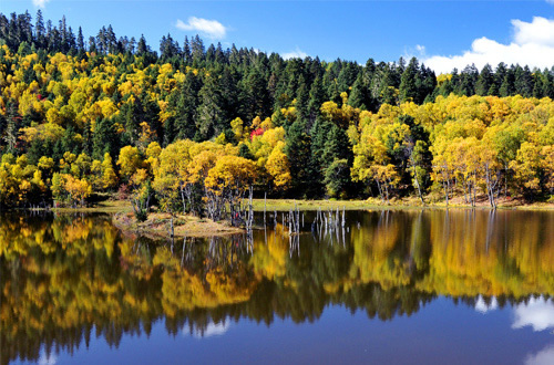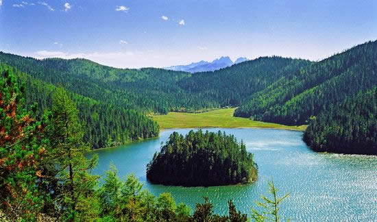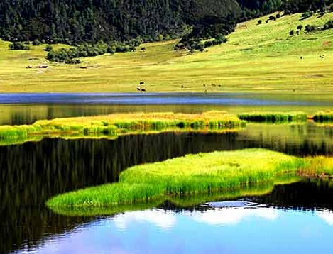 属都湖隶属于普达措国家公园,位于香格里拉东北部35公里处,距碧塔海十多公里。湖水清澈,水底小鱼悠游。最独特的是一种名为“裂腹鱼”的珍稀鱼类,这种鱼腹部有一条细细的裂纹。湖四周是遮天蔽日的林木,湖畔还有个牛羊成群的牧场,充满藏区的生活情趣。