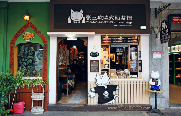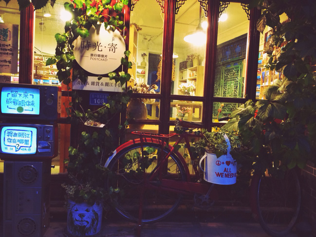 我从青石板的路面走向连着小店的木板,在这鲜花相伴,水流潺潺的木板上,席地小息,允吸着淡淡的花香,听着叮咚的水声,品味着古城小街的古韵,感受古城小店的魅力,实为人生中的一种享受。