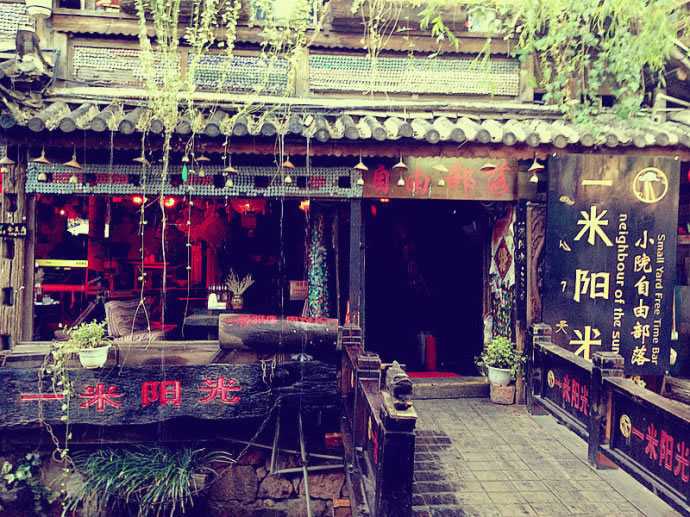 历经千年的的丽江古城,星罗棋布的布撒着无数古朴的特色小店。那布满鹅卵石的清澈水流环绕着小店,那些被绿叶簇拥的小黄花,像蝴蝶似的花瓣,笑迎着来自世界各地的游人,岸边的小紫花羞涩深情地凝望着走近小店的人们。柳树在微风中舞动着阿娜多姿的绿色飘带,又深情地垂至水边,与屋檐下的大红灯笼的红黄长穗交融在水面。